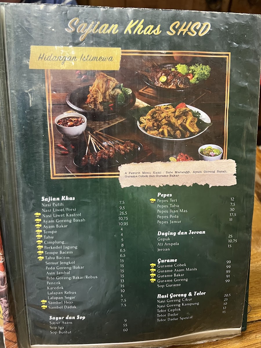 “ Traditional Sundanese Dining Experience. A Taste of Authenticity! If you are happen to be around tebet and If you're searching for an unforgettable dining experience that stays true to traditional Sundanese values, look no further. SHSD, This Sundanese restaurant beautifully preserves the essence of West Javanese culture through its delicious food, warm atmosphere, and exceptional service. The waiters are happily greet and serve you with their friendly attitude and cheerful face! Me likey! ”